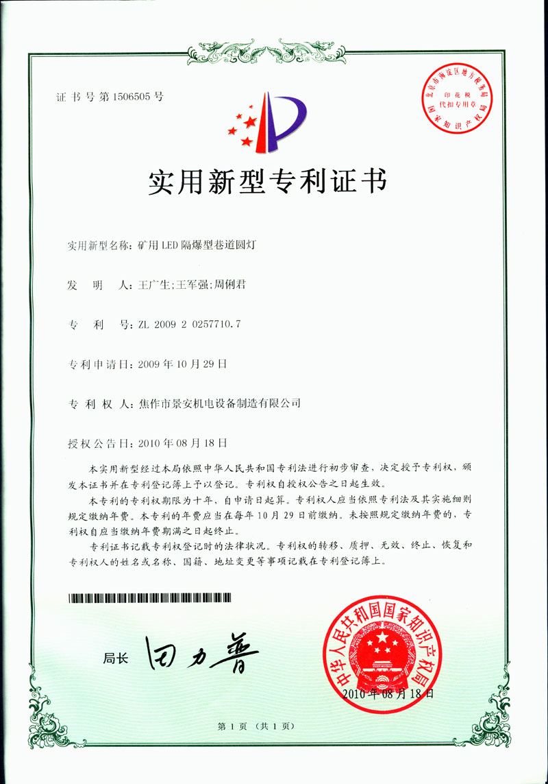 焦作景安公司始終堅(jiān)持“以科技為先導(dǎo),以市場(chǎng)為導(dǎo)向”的發(fā)展戰(zhàn)略,不斷進(jìn)行新產(chǎn)品的研制和開發(fā),在國家“六五”到“九五”期間,承擔(dān)和參與了國家多項(xiàng)科技攻關(guān)項(xiàng)目,產(chǎn)品的技術(shù)和質(zhì)量一直處于全國同行業(yè)領(lǐng)先位置。并被中國電器工業(yè)協(xié)會(huì)評(píng)定為“質(zhì)量可信產(chǎn)品”。特別是在礦用防爆燈領(lǐng)域,礦用隔爆型半導(dǎo)體(LED)照明燈具,2008年列入國家火炬計(jì)劃,獲2009年河南省工業(yè)和信息化廳的科技成果二等獎(jiǎng),并擁有多項(xiàng)國家專利。